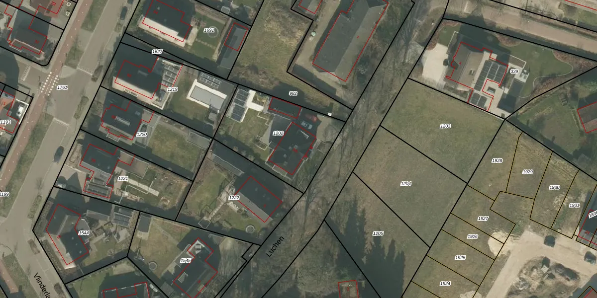 Het perceel waarop Luchen 5-A staat heeft een oppervlakte van 860 m². Dit is een groot perceel. De perceeloppervlakte wordt geregistreerd door het Kadaster. Gedetailleerde informatie over de maten van dit perceel kunt u vinden in het rapport Kadastrale kaart met maatvoering van Luchen 5-A.