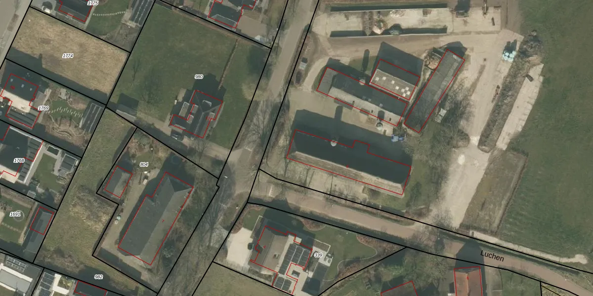 Het perceel waarop Luchen 8 staat heeft een oppervlakte van 2,2 ha. Dit is een zeer groot perceel. De perceeloppervlakte wordt geregistreerd door het Kadaster. Gedetailleerde informatie over de maten van dit perceel kunt u vinden in het rapport Kadastrale kaart met maatvoering van Luchen 8.