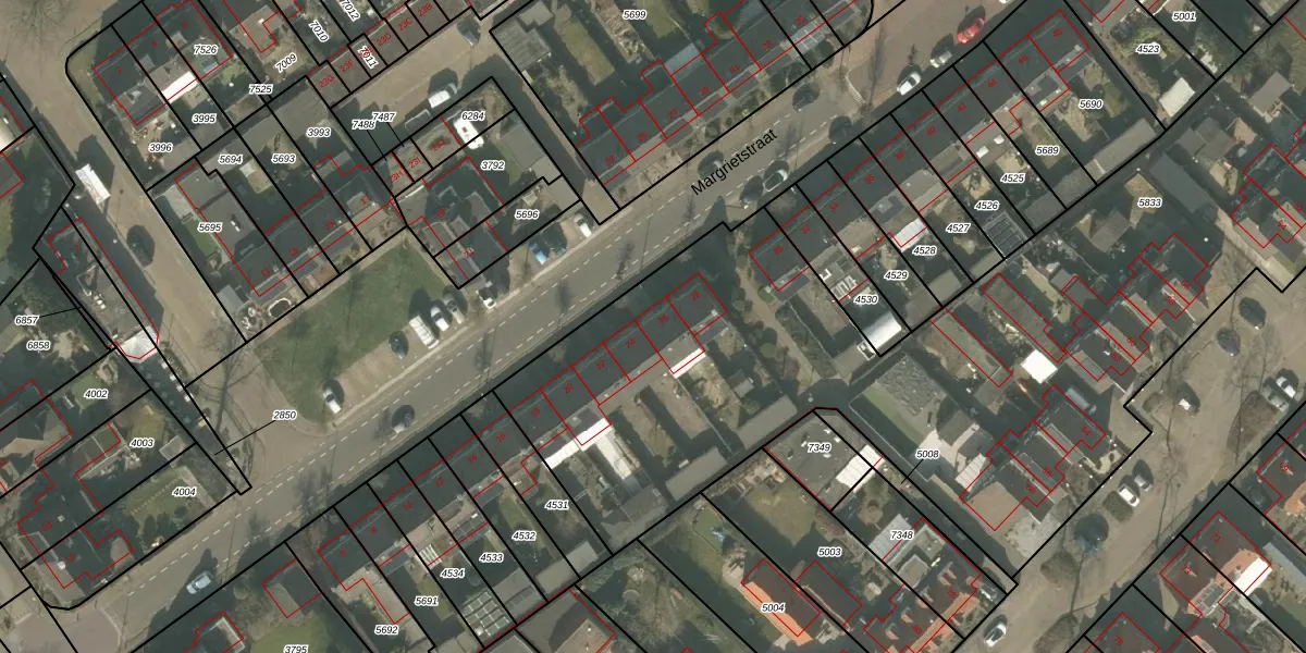 Margrietstraat 26 is gelegen op kadastraal perceel MLO01F5833. Deze kadastrale aanduiding is uniek en wordt gebruikt door het Kadaster om eigendomsrechten en andere zakelijke rechten vast te leggen. Het perceel maakt onderdeel uit van de kadastrale gemeente Mierlo.