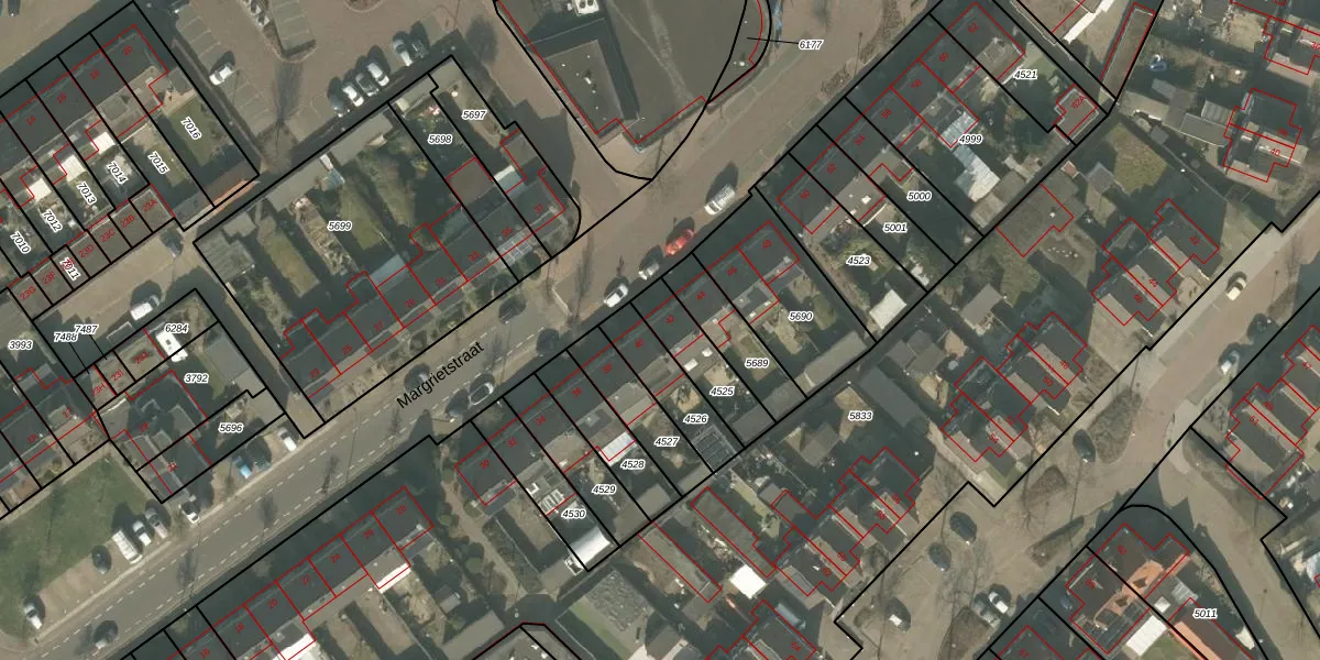 Margrietstraat 42 is gelegen op kadastraal perceel MLO01F4525. Deze kadastrale aanduiding is uniek en wordt gebruikt door het Kadaster om eigendomsrechten en andere zakelijke rechten vast te leggen. Het perceel maakt onderdeel uit van de kadastrale gemeente Mierlo.
