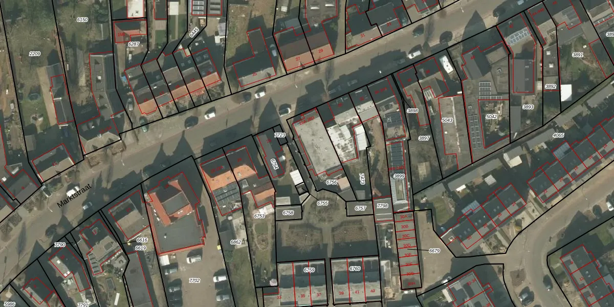Het perceel waarop Marktstraat 28-C staat heeft een oppervlakte van 313 m². Dit is een groot perceel. De perceeloppervlakte wordt geregistreerd door het Kadaster. Gedetailleerde informatie over de maten van dit perceel kunt u vinden in het rapport Kadastrale kaart met maatvoering van Marktstraat 28-C.