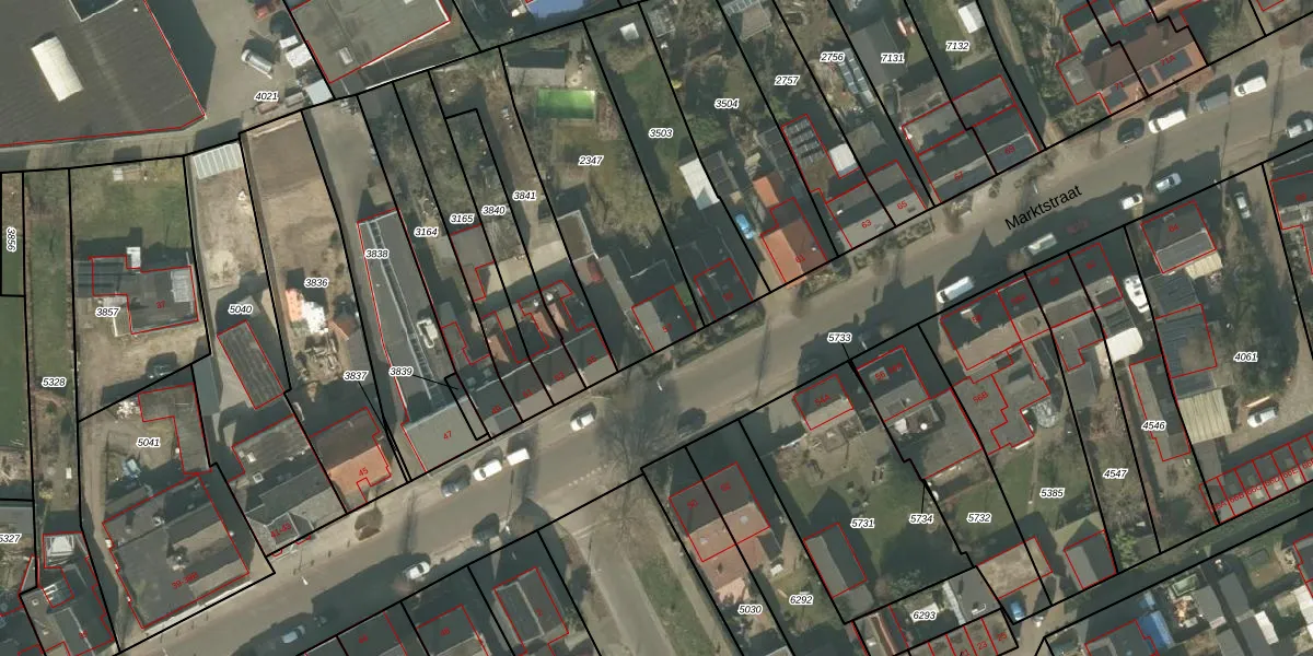 Het perceel waarop Marktstraat 57 staat heeft een oppervlakte van 765 m². Dit is een groot perceel. De perceeloppervlakte wordt geregistreerd door het Kadaster. Gedetailleerde informatie over de maten van dit perceel kunt u vinden in het rapport Kadastrale kaart met maatvoering van Marktstraat 57.