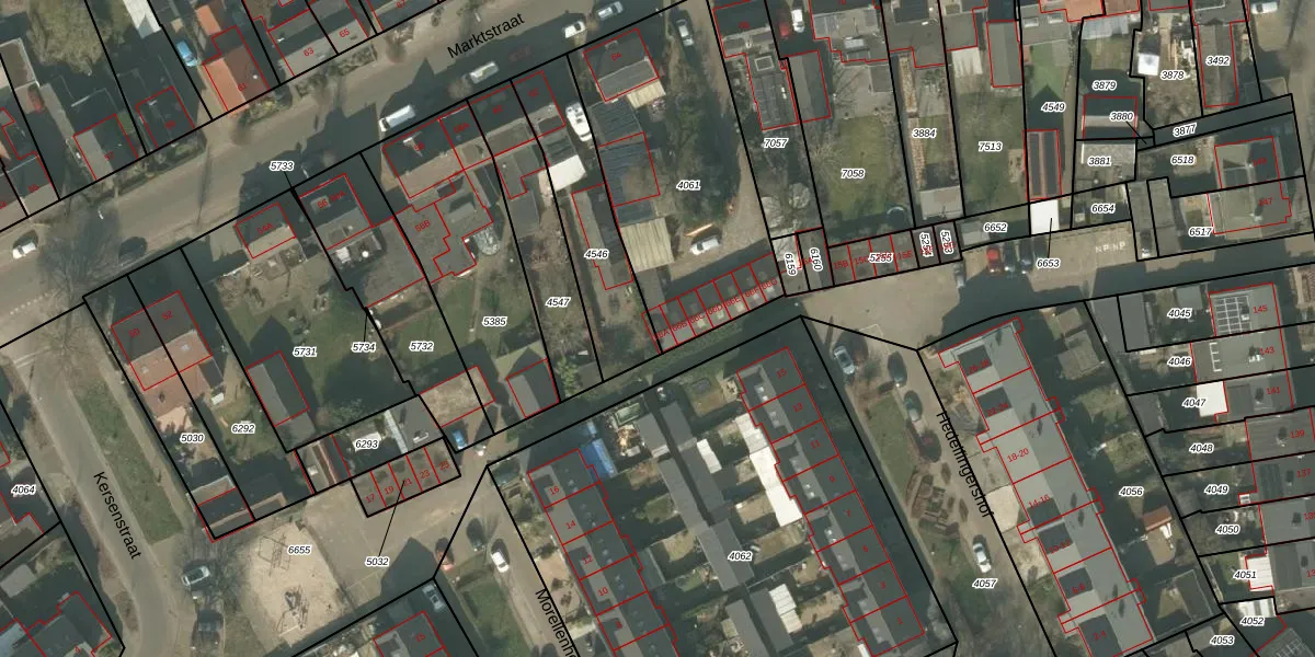 Het perceel waarop Marktstraat 66-A staat heeft een oppervlakte van 1043 m². Dit is een zeer groot perceel. De perceeloppervlakte wordt geregistreerd door het Kadaster. Gedetailleerde informatie over de maten van dit perceel kunt u vinden in het rapport Kadastrale kaart met maatvoering van Marktstraat 66-A.