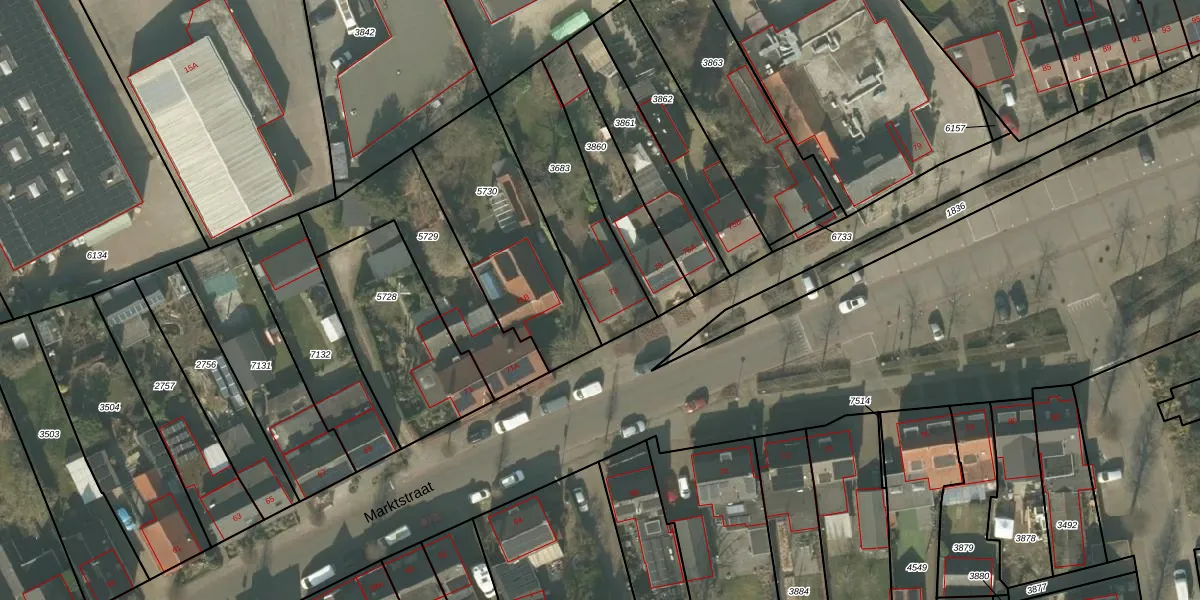 Het perceel waarop Marktstraat 73 staat heeft een oppervlakte van 473 m². Dit is een groot perceel. De perceeloppervlakte wordt geregistreerd door het Kadaster. Gedetailleerde informatie over de maten van dit perceel kunt u vinden in het rapport Kadastrale kaart met maatvoering van Marktstraat 73.