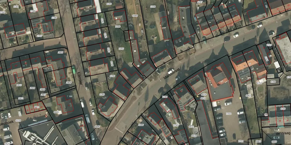 Het perceel waarop Marktstraat 9 staat heeft een oppervlakte van 864 m². Dit is een groot perceel. De perceeloppervlakte wordt geregistreerd door het Kadaster. Gedetailleerde informatie over de maten van dit perceel kunt u vinden in het rapport Kadastrale kaart met maatvoering van Marktstraat 9.