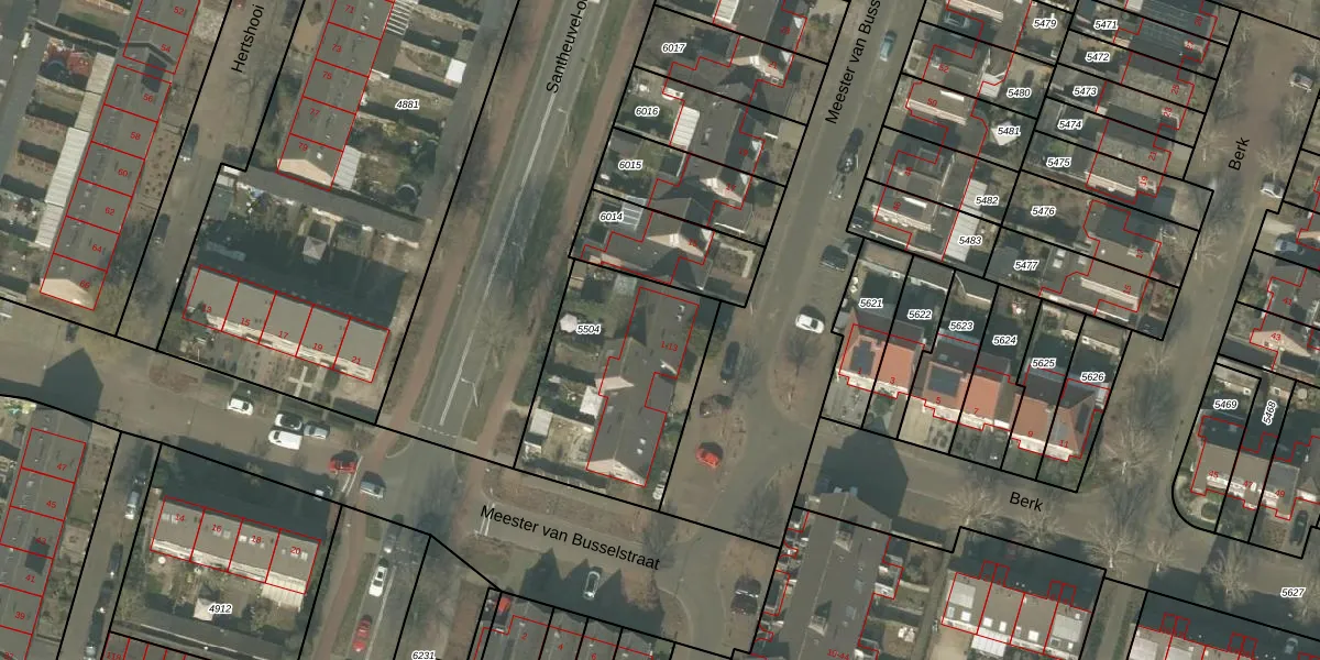 Meester van Busselstraat 13 is gelegen op kadastraal perceel MLO01F5504. Deze kadastrale aanduiding is uniek en wordt gebruikt door het Kadaster om eigendomsrechten en andere zakelijke rechten vast te leggen. Het perceel maakt onderdeel uit van de kadastrale gemeente Mierlo.