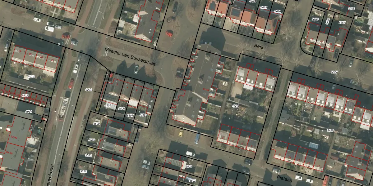 Het perceel waarop Meester van Busselstraat 22 staat heeft een oppervlakte van 2358 m². Dit is een zeer groot perceel. De perceeloppervlakte wordt geregistreerd door het Kadaster. Gedetailleerde informatie over de maten van dit perceel kunt u vinden in het rapport Kadastrale kaart met maatvoering van Meester van Busselstraat 22.