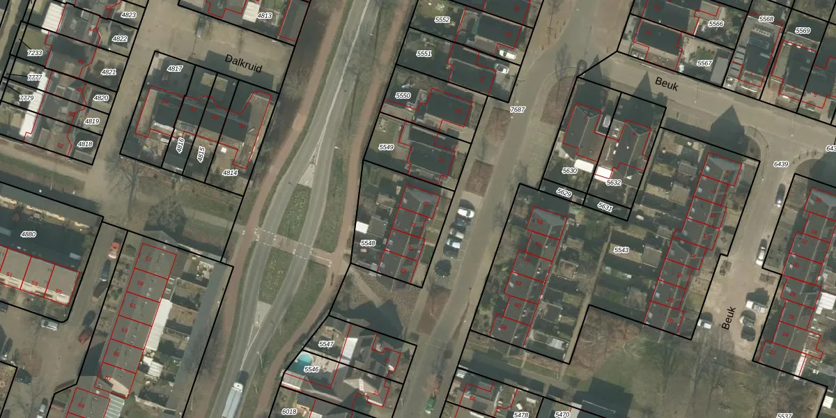 Het perceel waarop het adres ligt is MLO01-F-5548. De afkorting 'MLO01' staat voor kadastrale gemeente Mierlo. Het perceel is kleiner dan gemiddeld in Mierlo. Het perceel is 503 m² groot, terwijl het gemiddelde ligt op 3053,93 m². Het grootste perceel in de kadastrale gemeente is 1,20 km². Het kleinste perceel heeft een oppervlakte van 0 m². Op het perceel zijn 4 adressen aanwezig. De huidige grenzen van het perceel zijn digitaal in de Basisregistratie Kadaster (BRK) geregistreerd op 13-12-2011.