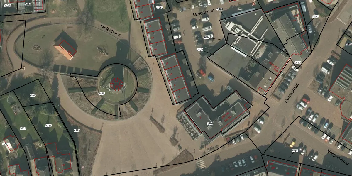 Het perceel waarop Molenhoek 8 staat heeft een oppervlakte van 1373 m². Dit is een zeer groot perceel. De perceeloppervlakte wordt geregistreerd door het Kadaster. Gedetailleerde informatie over de maten van dit perceel kunt u vinden in het rapport Kadastrale kaart met maatvoering van Molenhoek 8.