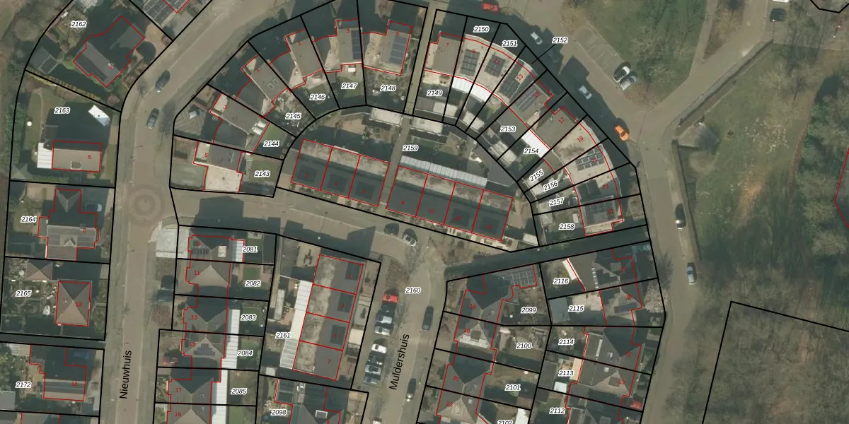 Muldershuis 10 is gelegen op kadastraal perceel MLO01E2159. Deze kadastrale aanduiding is uniek en wordt gebruikt door het Kadaster om eigendomsrechten en andere zakelijke rechten vast te leggen. Het perceel maakt onderdeel uit van de kadastrale gemeente Mierlo.