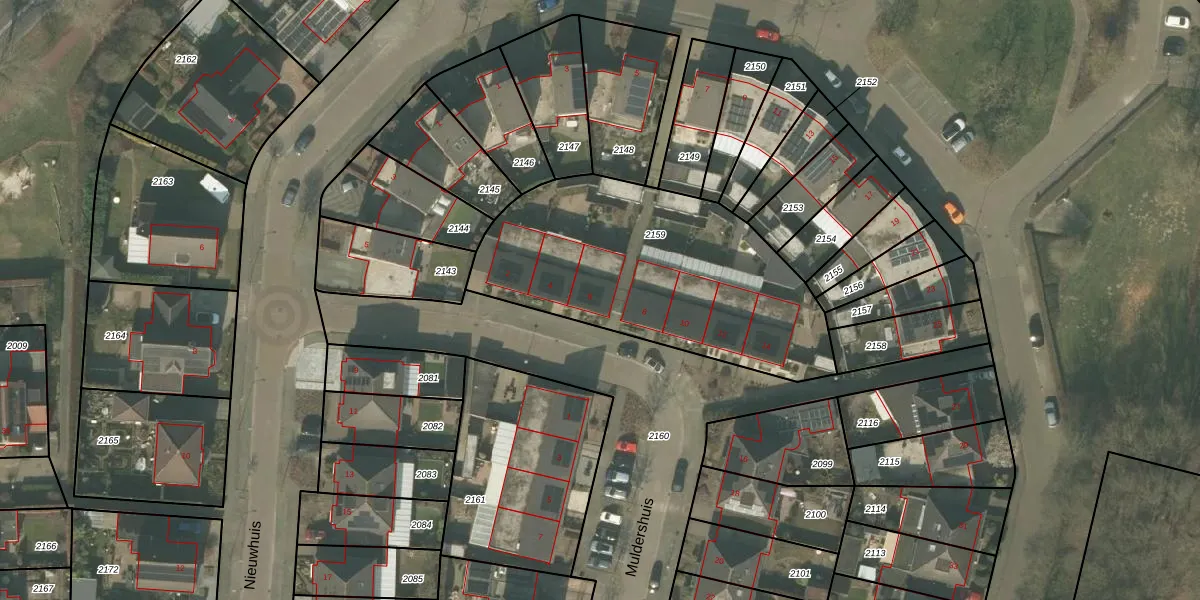 Het perceel waarop Muldershuis 6 staat heeft een oppervlakte van 1287 m². Dit is een zeer groot perceel. De perceeloppervlakte wordt geregistreerd door het Kadaster. Gedetailleerde informatie over de maten van dit perceel kunt u vinden in het rapport Kadastrale kaart met maatvoering van Muldershuis 6.