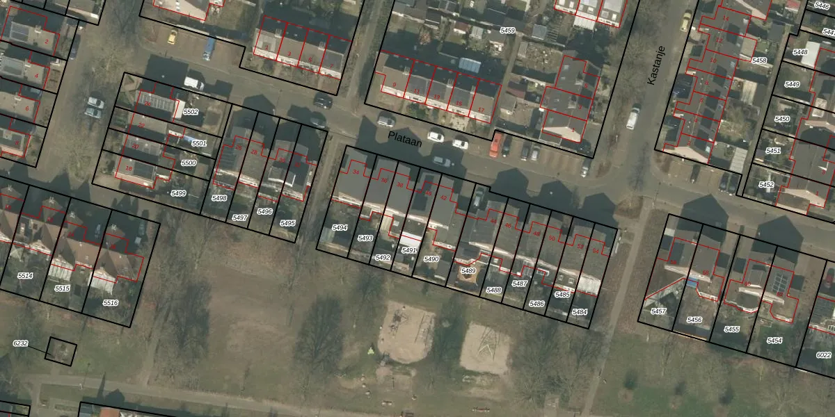 Gebruik de zoekbalk of klik op een perceel voor informatie over de adressen binnen dit perceel.