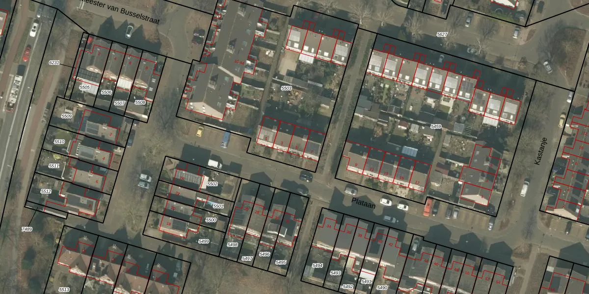 Plataan 5 is gelegen op kadastraal perceel MLO01F5503. Deze kadastrale aanduiding is uniek en wordt gebruikt door het Kadaster om eigendomsrechten en andere zakelijke rechten vast te leggen. Het perceel maakt onderdeel uit van de kadastrale gemeente Mierlo.