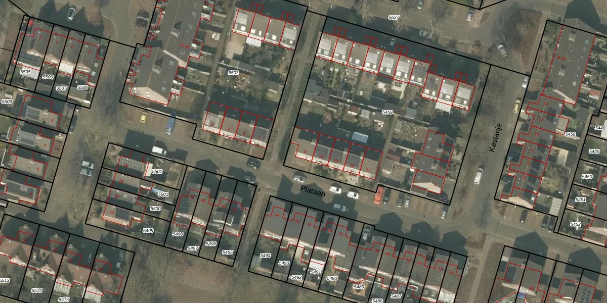 Het perceel waarop Plataan 9 staat heeft een oppervlakte van 2817 m². Dit is een zeer groot perceel. De perceeloppervlakte wordt geregistreerd door het Kadaster. Gedetailleerde informatie over de maten van dit perceel kunt u vinden in het rapport Kadastrale kaart met maatvoering van Plataan 9.