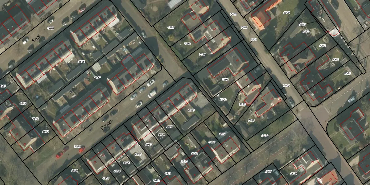 Het perceel waarop Postel 1 staat heeft een oppervlakte van 561 m². Dit is een groot perceel. De perceeloppervlakte wordt geregistreerd door het Kadaster. Gedetailleerde informatie over de maten van dit perceel kunt u vinden in het rapport Kadastrale kaart met maatvoering van Postel 1.