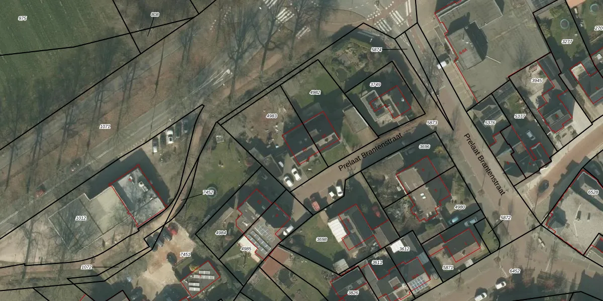 Prelaat Brantenstraat 13 is gelegen op kadastraal perceel MLO01F4983. Deze kadastrale aanduiding is uniek en wordt gebruikt door het Kadaster om eigendomsrechten en andere zakelijke rechten vast te leggen. Het perceel maakt onderdeel uit van de kadastrale gemeente Mierlo.