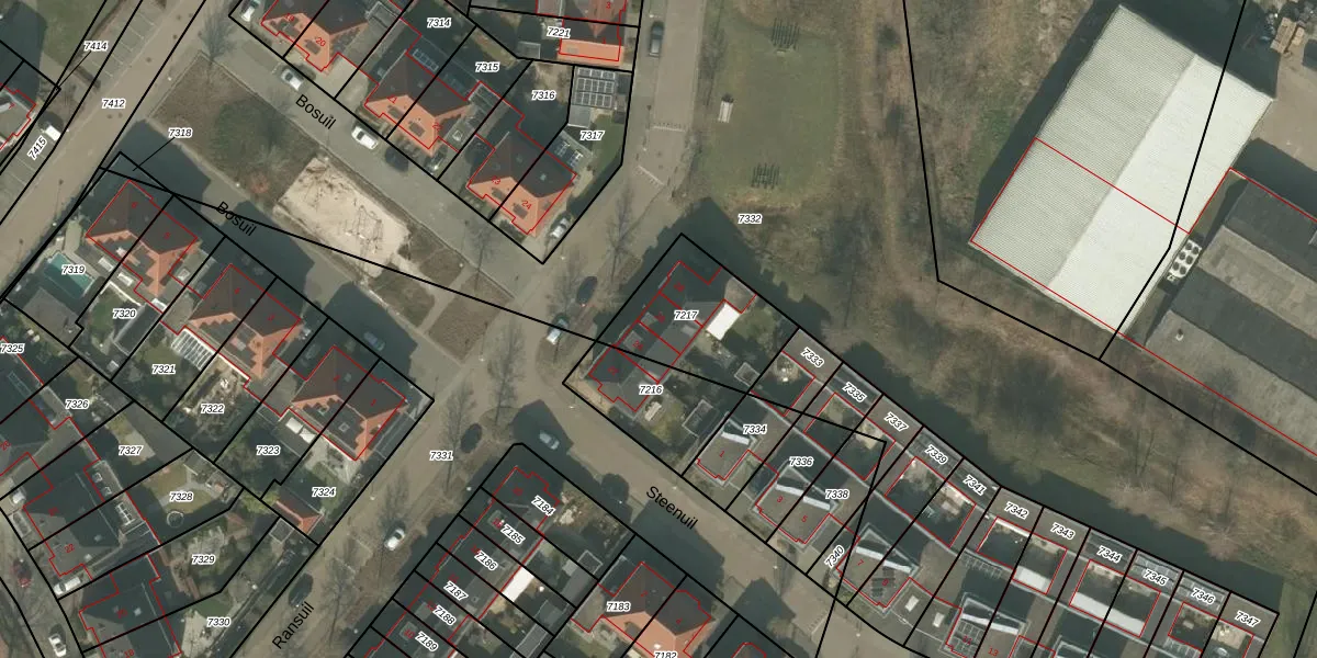 Het perceel waarop Ransuil 26 staat heeft een oppervlakte van 387 m². Dit is een groot perceel. De perceeloppervlakte wordt geregistreerd door het Kadaster. Gedetailleerde informatie over de maten van dit perceel kunt u vinden in het rapport Kadastrale kaart met maatvoering van Ransuil 26.