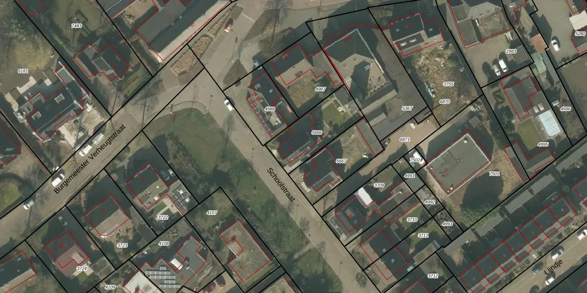 Schoolstraat 56 is gelegen op kadastraal perceel MLO01F5666. Deze kadastrale aanduiding is uniek en wordt gebruikt door het Kadaster om eigendomsrechten en andere zakelijke rechten vast te leggen. Het perceel maakt onderdeel uit van de kadastrale gemeente Mierlo.