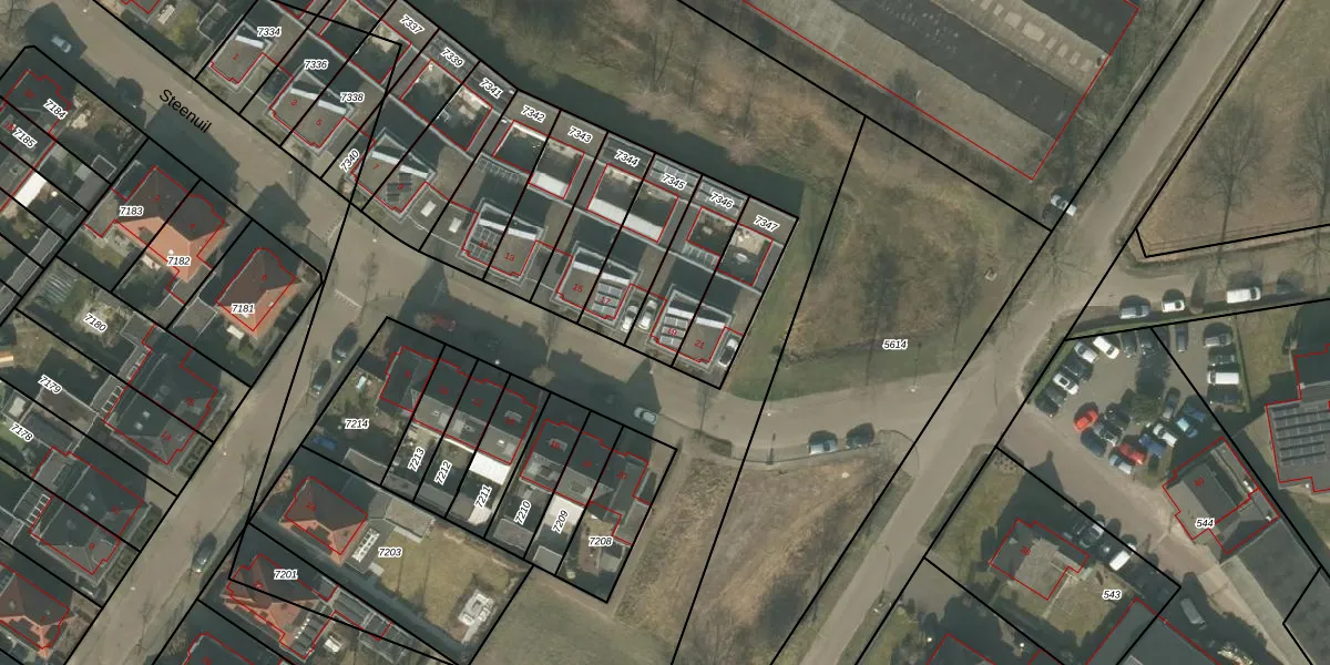 Gebruik de zoekbalk of klik op een perceel voor informatie over de adressen binnen dit perceel.