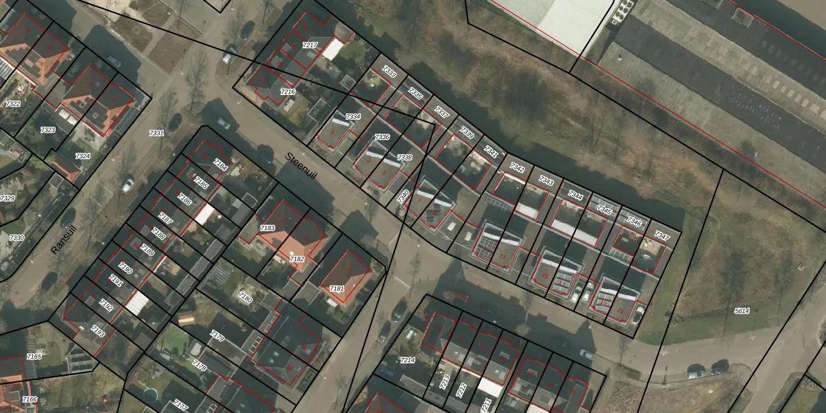 Het perceel waarop Steenuil 7 staat heeft een oppervlakte van 182 m². Dit is een middelgroot perceel. De perceeloppervlakte wordt geregistreerd door het Kadaster. Gedetailleerde informatie over de maten van dit perceel kunt u vinden in het rapport Kadastrale kaart met maatvoering van Steenuil 7.