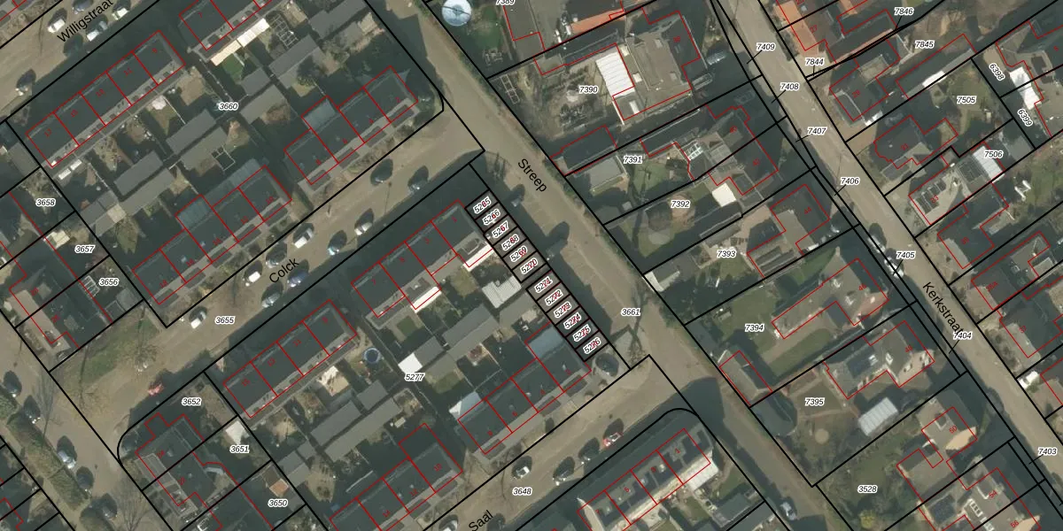 Gebruik de zoekbalk of klik op een perceel voor informatie over de adressen binnen dit perceel.