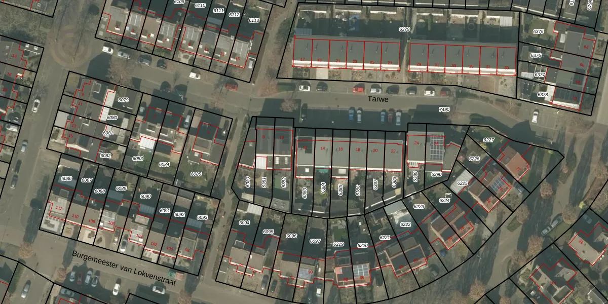 Gebruik de zoekbalk of klik op een perceel voor informatie over de adressen binnen dit perceel.