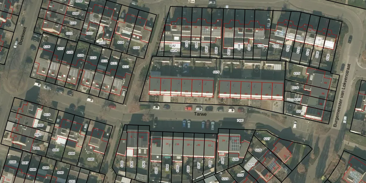 Het perceel waarop Tarwe 23 staat heeft een oppervlakte van 1953 m². Dit is een zeer groot perceel. De perceeloppervlakte wordt geregistreerd door het Kadaster. Gedetailleerde informatie over de maten van dit perceel kunt u vinden in het rapport Kadastrale kaart met maatvoering van Tarwe 23.