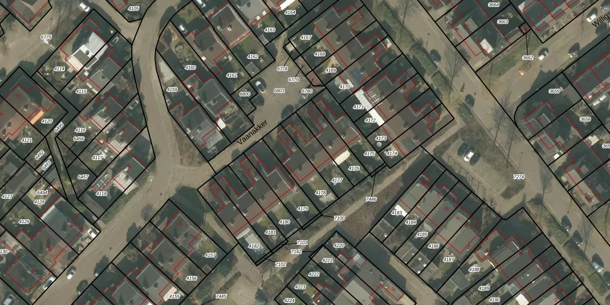Het perceel waarop Vaanakker 19 staat heeft een oppervlakte van 197 m². Dit is een middelgroot perceel. De perceeloppervlakte wordt geregistreerd door het Kadaster. Gedetailleerde informatie over de maten van dit perceel kunt u vinden in het rapport Kadastrale kaart met maatvoering van Vaanakker 19.