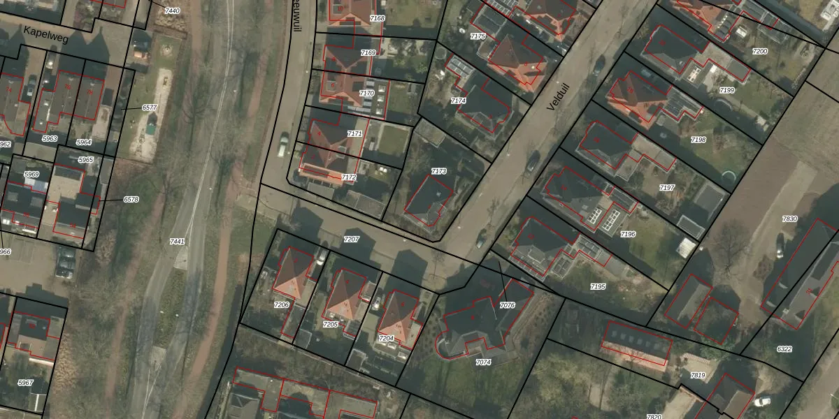 Het perceel waarop Velduil 1 staat heeft een oppervlakte van 430 m². Dit is een groot perceel. De perceeloppervlakte wordt geregistreerd door het Kadaster. Gedetailleerde informatie over de maten van dit perceel kunt u vinden in het rapport Kadastrale kaart met maatvoering van Velduil 1.