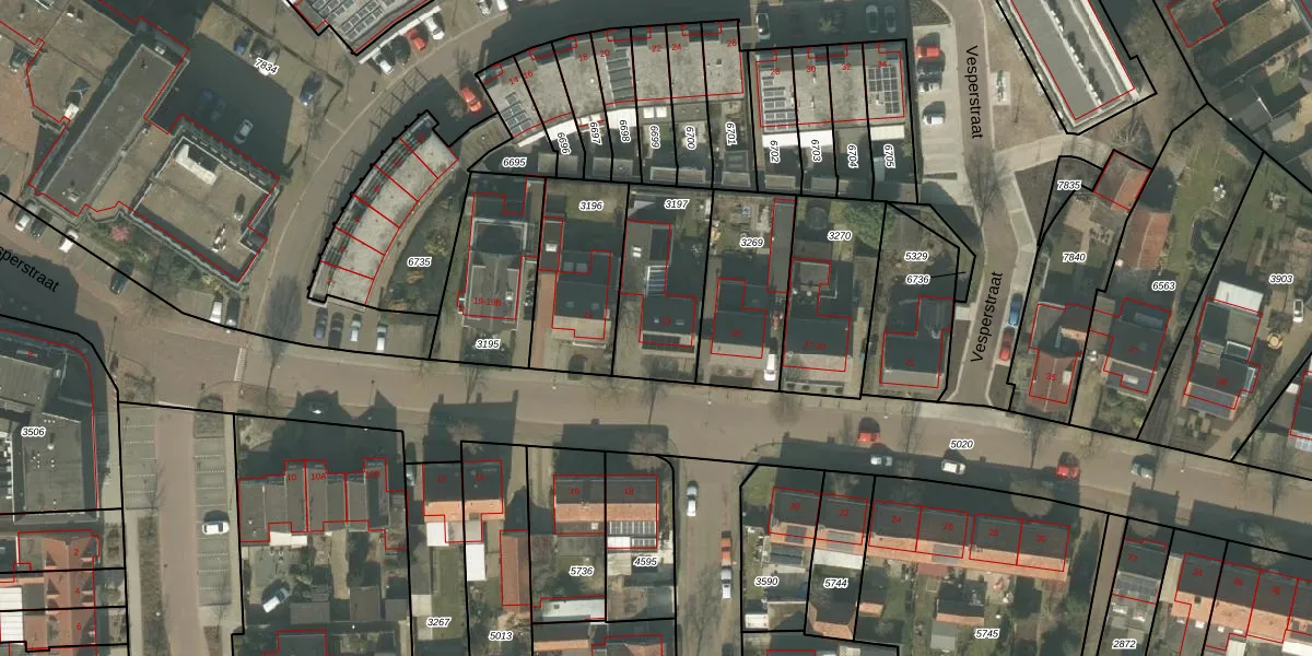 Vesperstraat 23 is gelegen op kadastraal perceel MLO01F3197. Deze kadastrale aanduiding is uniek en wordt gebruikt door het Kadaster om eigendomsrechten en andere zakelijke rechten vast te leggen. Het perceel maakt onderdeel uit van de kadastrale gemeente Mierlo.