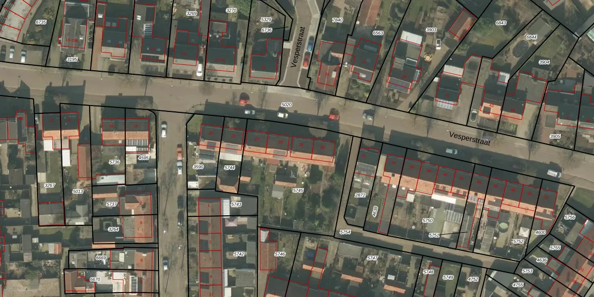 Vesperstraat 28 is gelegen op kadastraal perceel MLO01F5745. Deze kadastrale aanduiding is uniek en wordt gebruikt door het Kadaster om eigendomsrechten en andere zakelijke rechten vast te leggen. Het perceel maakt onderdeel uit van de kadastrale gemeente Mierlo.