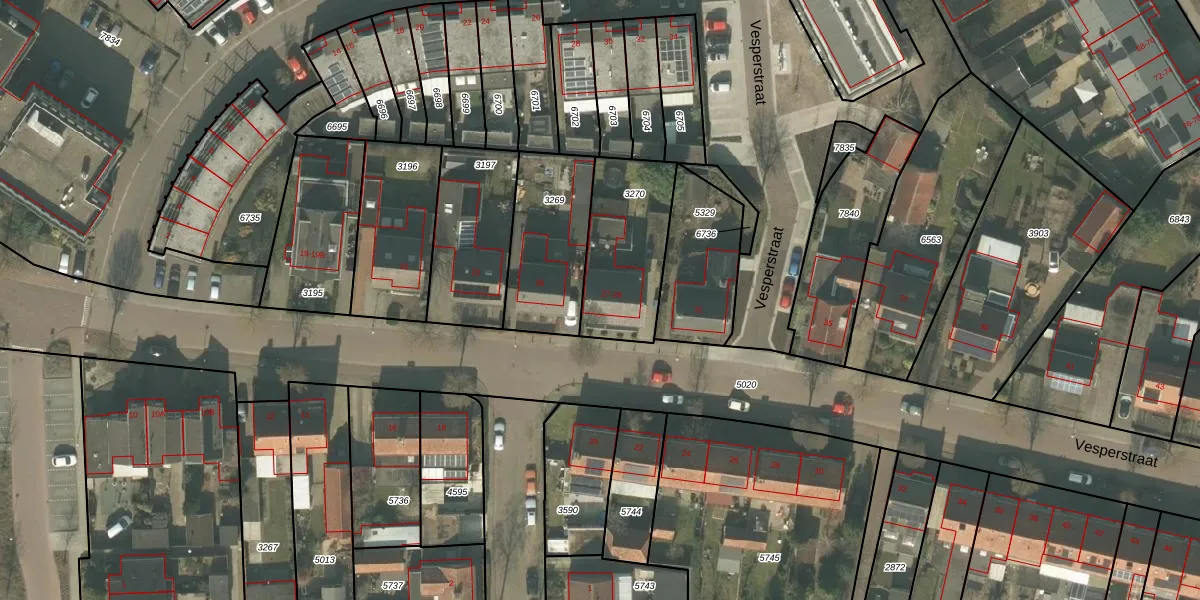 Het perceel waarop Vesperstraat 29 staat heeft een oppervlakte van 393 m². Dit is een groot perceel. De perceeloppervlakte wordt geregistreerd door het Kadaster. Gedetailleerde informatie over de maten van dit perceel kunt u vinden in het rapport Kadastrale kaart met maatvoering van Vesperstraat 29.