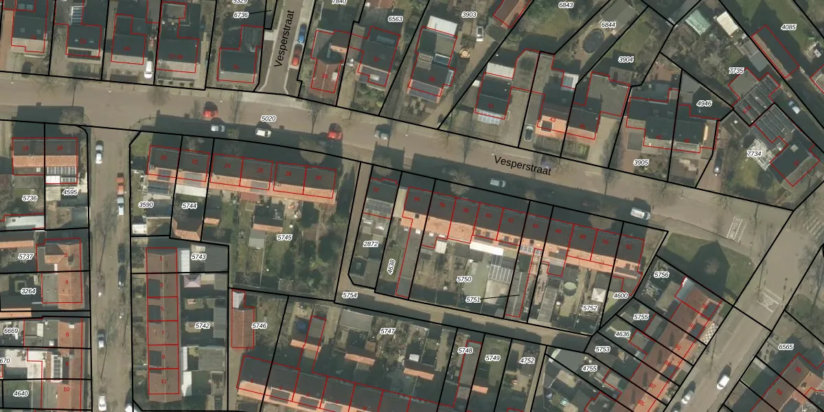 Vesperstraat 34 is gelegen op kadastraal perceel MLO01F4638. Deze kadastrale aanduiding is uniek en wordt gebruikt door het Kadaster om eigendomsrechten en andere zakelijke rechten vast te leggen. Het perceel maakt onderdeel uit van de kadastrale gemeente Mierlo.