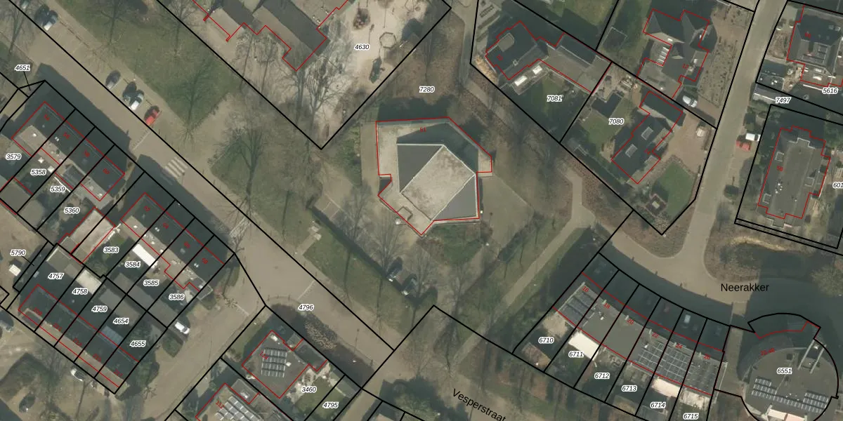 Vesperstraat 51 is gelegen op kadastraal perceel MLO01F7280. Deze kadastrale aanduiding is uniek en wordt gebruikt door het Kadaster om eigendomsrechten en andere zakelijke rechten vast te leggen. Het perceel maakt onderdeel uit van de kadastrale gemeente Mierlo.