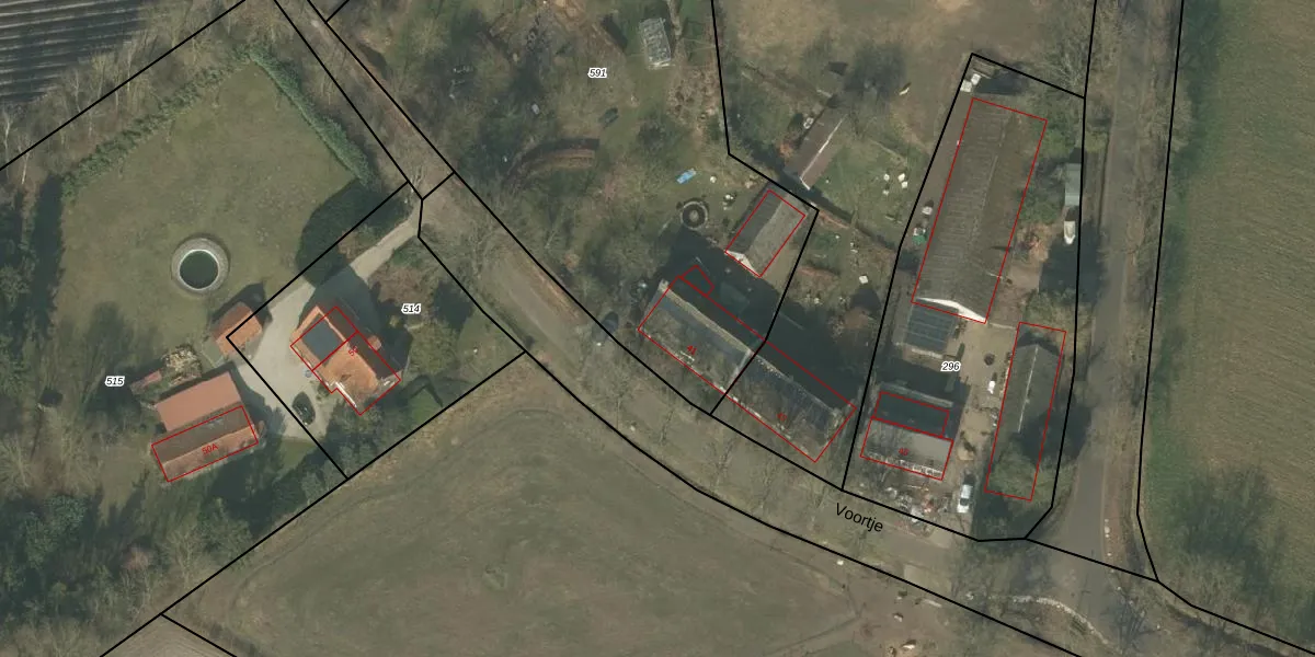 Het perceel waarop Voortje 41 staat heeft een oppervlakte van 3895 m². Dit is een zeer groot perceel. De perceeloppervlakte wordt geregistreerd door het Kadaster. Gedetailleerde informatie over de maten van dit perceel kunt u vinden in het rapport Kadastrale kaart met maatvoering van Voortje 41.