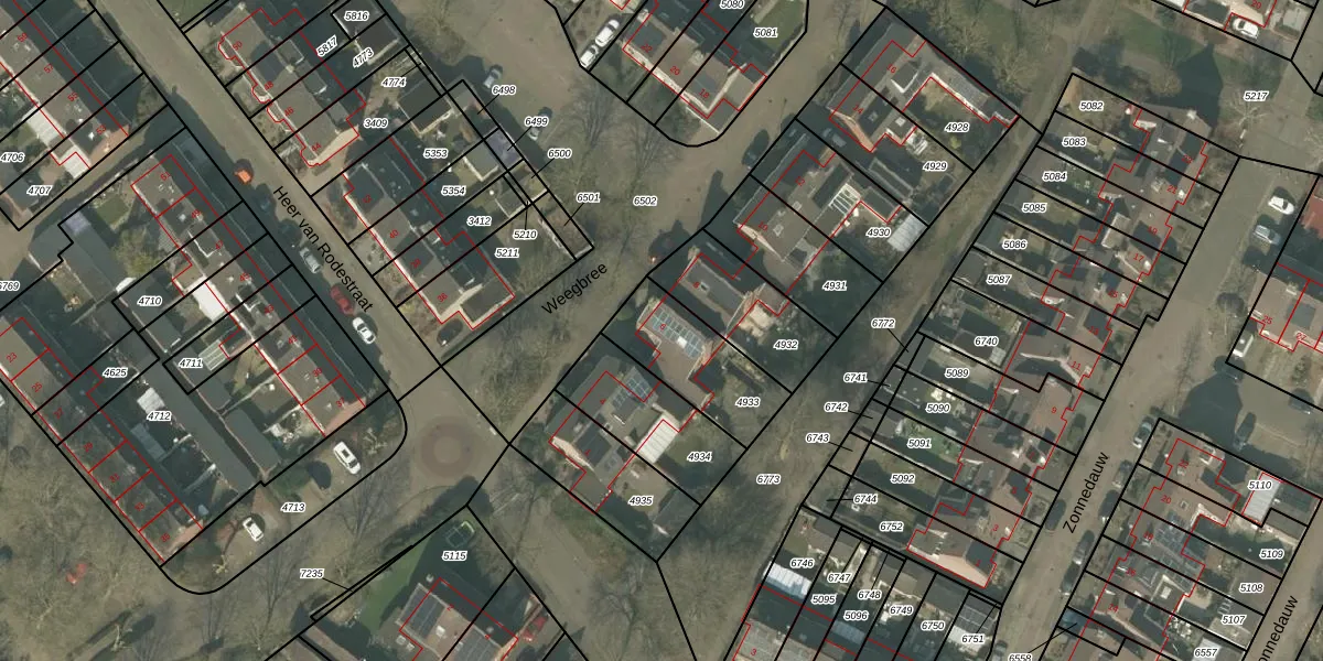 Weegbree 6 is gelegen op kadastraal perceel MLO01F4933. Deze kadastrale aanduiding is uniek en wordt gebruikt door het Kadaster om eigendomsrechten en andere zakelijke rechten vast te leggen. Het perceel maakt onderdeel uit van de kadastrale gemeente Mierlo.