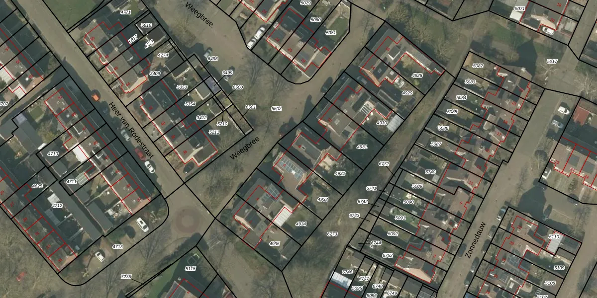 Gebruik de zoekbalk of klik op een perceel voor informatie over de adressen binnen dit perceel.