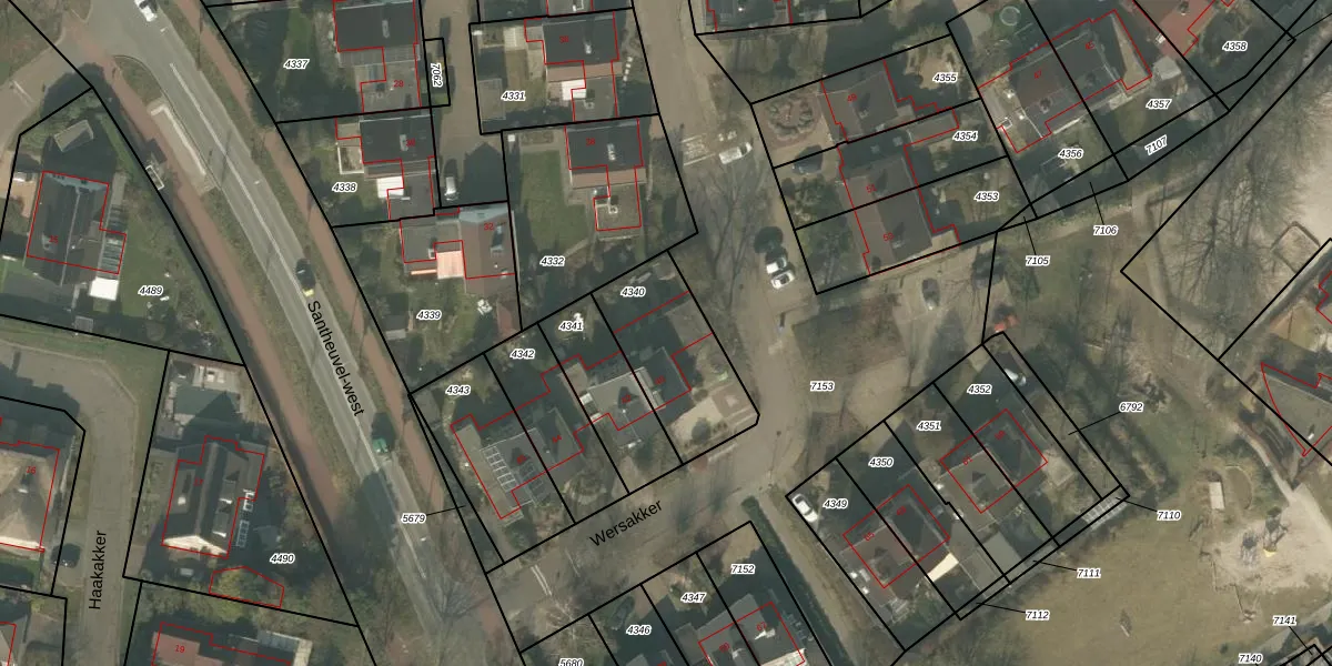 Gebruik de zoekbalk of klik op een perceel voor informatie over de adressen binnen dit perceel.