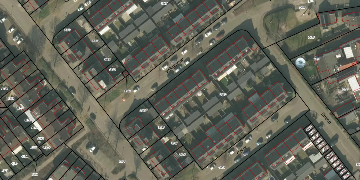 Willigstraat 13 is gelegen op kadastraal perceel MLO01F3660. Deze kadastrale aanduiding is uniek en wordt gebruikt door het Kadaster om eigendomsrechten en andere zakelijke rechten vast te leggen. Het perceel maakt onderdeel uit van de kadastrale gemeente Mierlo.