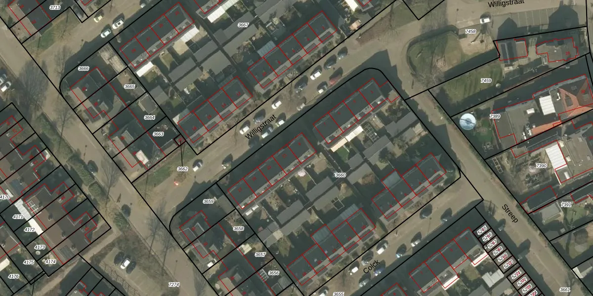 Willigstraat 9 is gelegen op kadastraal perceel MLO01F3660. Deze kadastrale aanduiding is uniek en wordt gebruikt door het Kadaster om eigendomsrechten en andere zakelijke rechten vast te leggen. Het perceel maakt onderdeel uit van de kadastrale gemeente Mierlo.