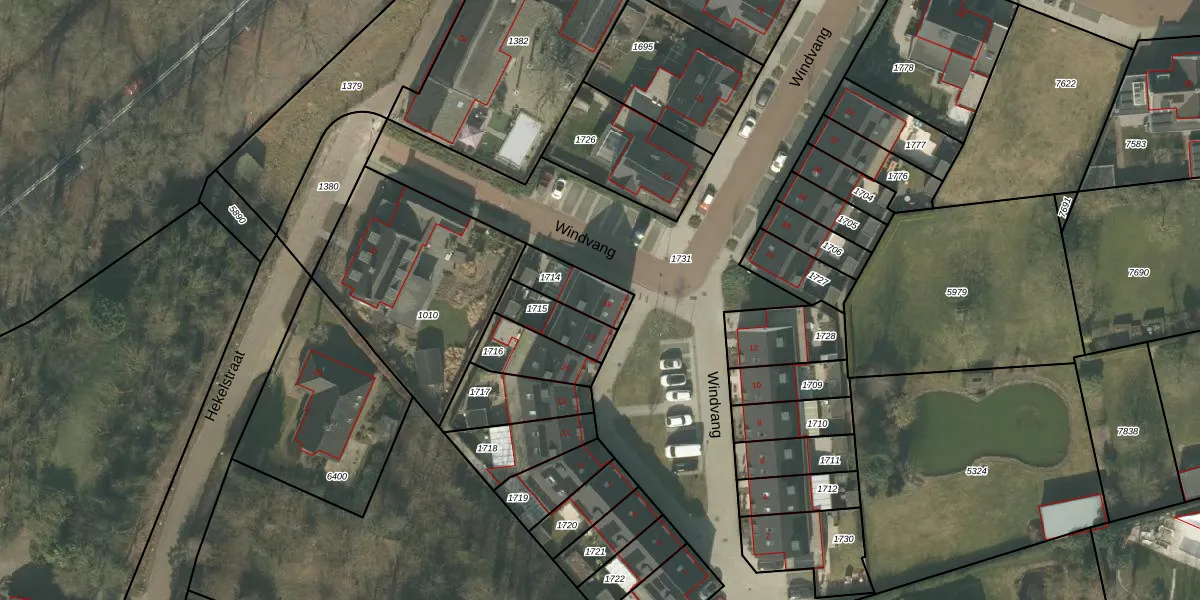 Windvang 19 is gelegen op kadastraal perceel MLO01L1714. Deze kadastrale aanduiding is uniek en wordt gebruikt door het Kadaster om eigendomsrechten en andere zakelijke rechten vast te leggen. Het perceel maakt onderdeel uit van de kadastrale gemeente Mierlo.