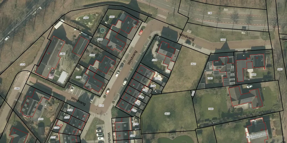Het perceel waarop Windvang 24 staat heeft een oppervlakte van 163 m². Dit is een middelgroot perceel. De perceeloppervlakte wordt geregistreerd door het Kadaster. Gedetailleerde informatie over de maten van dit perceel kunt u vinden in het rapport Kadastrale kaart met maatvoering van Windvang 24.