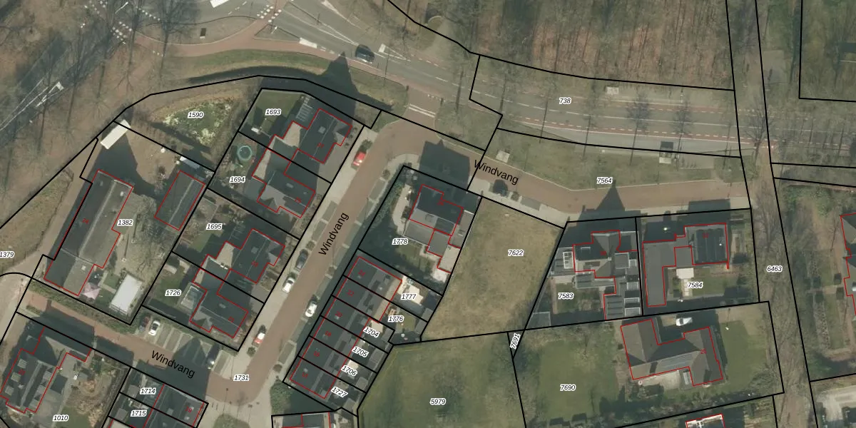 Het perceel waarop Windvang 26 staat heeft een oppervlakte van 497 m². Dit is een groot perceel. De perceeloppervlakte wordt geregistreerd door het Kadaster. Gedetailleerde informatie over de maten van dit perceel kunt u vinden in het rapport Kadastrale kaart met maatvoering van Windvang 26.