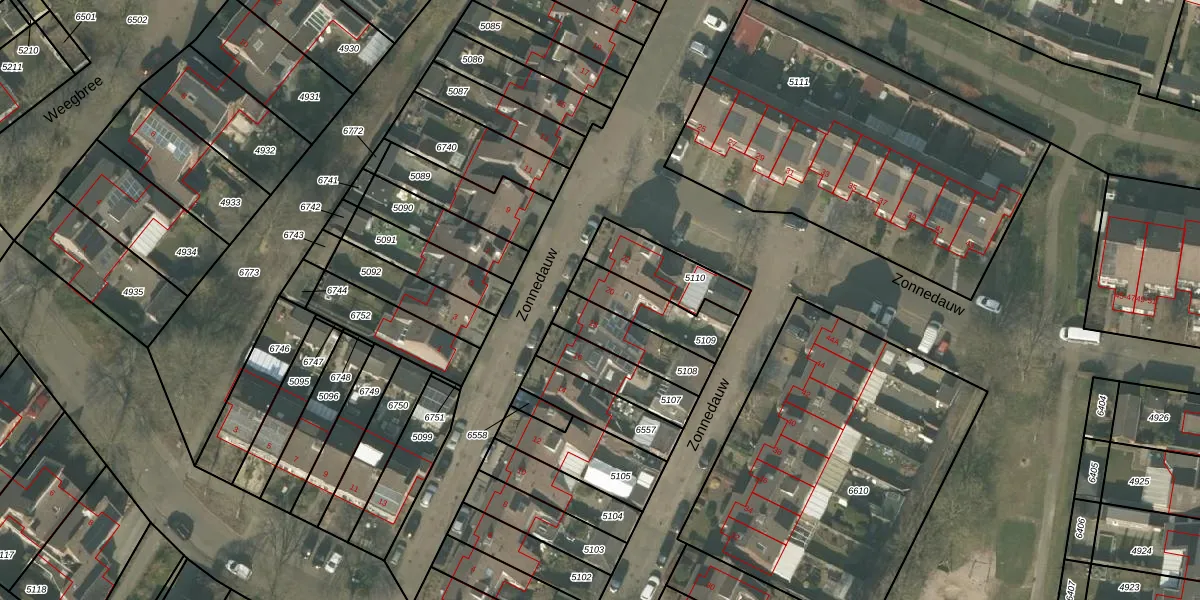 Zonnedauw 20 is gelegen op kadastraal perceel MLO01F5109. Deze kadastrale aanduiding is uniek en wordt gebruikt door het Kadaster om eigendomsrechten en andere zakelijke rechten vast te leggen. Het perceel maakt onderdeel uit van de kadastrale gemeente Mierlo.