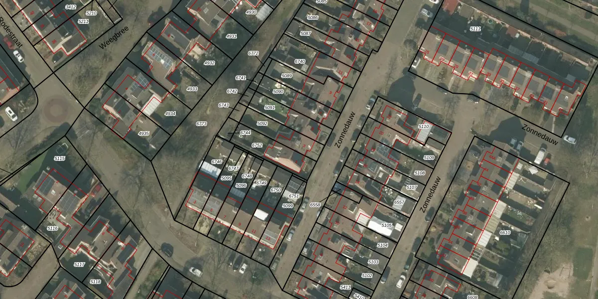 Gebruik de zoekbalk of klik op een perceel voor informatie over de adressen binnen dit perceel.