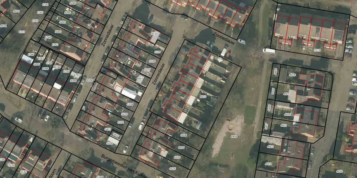 Zonnedauw 38 is gelegen op kadastraal perceel MLO01F6610. Deze kadastrale aanduiding is uniek en wordt gebruikt door het Kadaster om eigendomsrechten en andere zakelijke rechten vast te leggen. Het perceel maakt onderdeel uit van de kadastrale gemeente Mierlo.