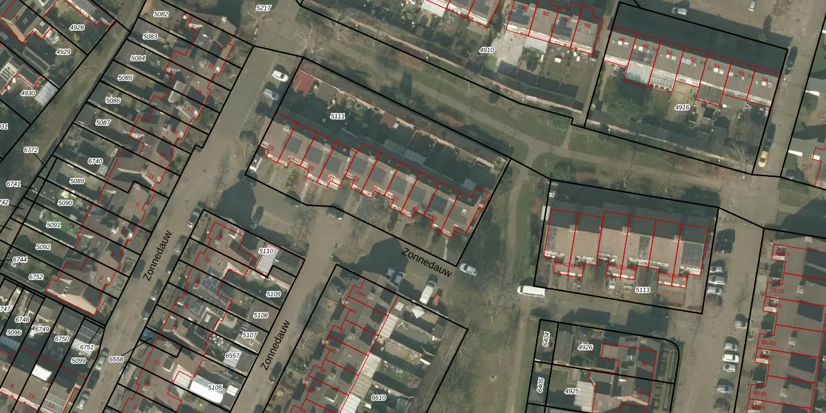 Zonnedauw 39 is gelegen op kadastraal perceel MLO01F5111. Deze kadastrale aanduiding is uniek en wordt gebruikt door het Kadaster om eigendomsrechten en andere zakelijke rechten vast te leggen. Het perceel maakt onderdeel uit van de kadastrale gemeente Mierlo.