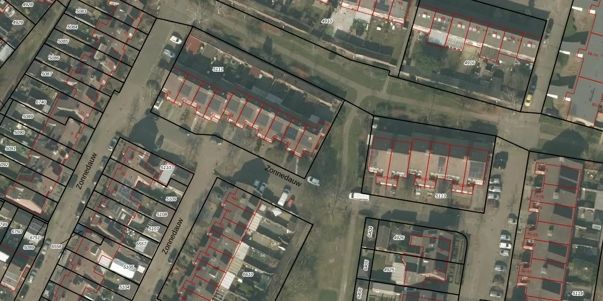 Zonnedauw 43 is gelegen op kadastraal perceel MLO01F5111. Deze kadastrale aanduiding is uniek en wordt gebruikt door het Kadaster om eigendomsrechten en andere zakelijke rechten vast te leggen. Het perceel maakt onderdeel uit van de kadastrale gemeente Mierlo.