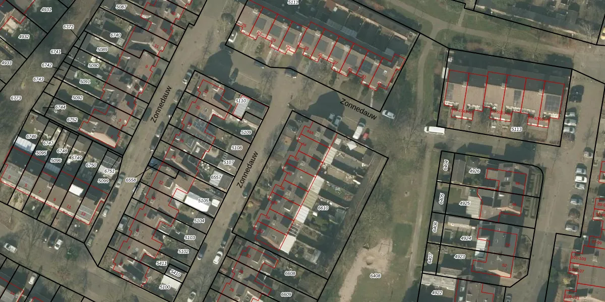 Zonnedauw 44 is gelegen op kadastraal perceel MLO01F6610. Deze kadastrale aanduiding is uniek en wordt gebruikt door het Kadaster om eigendomsrechten en andere zakelijke rechten vast te leggen. Het perceel maakt onderdeel uit van de kadastrale gemeente Mierlo.