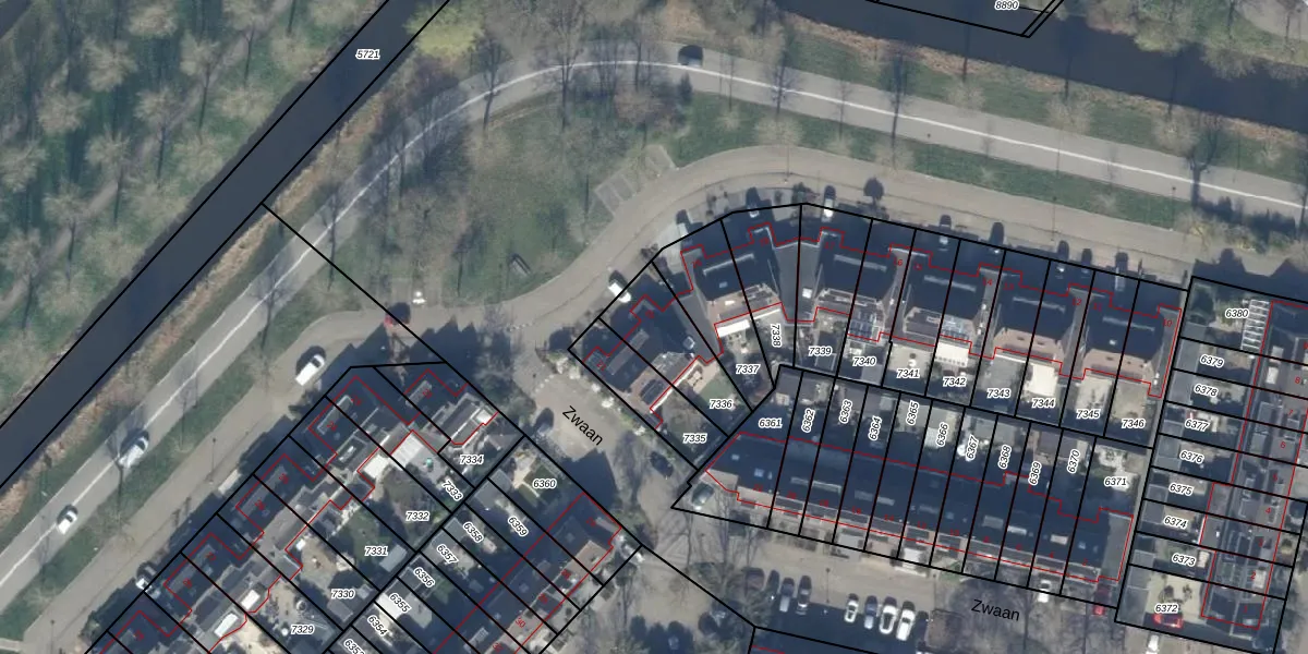 Gebruik de zoekbalk of klik op een perceel voor informatie over de adressen binnen dit perceel.
